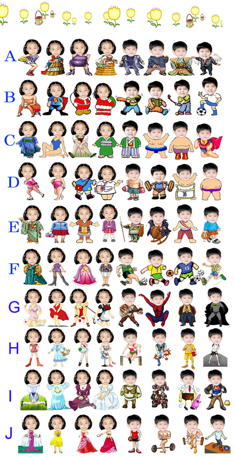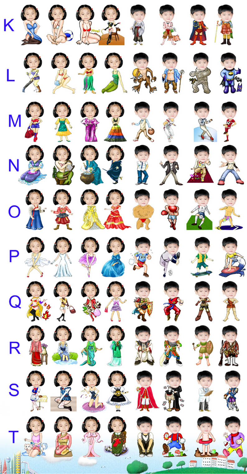 搖頭娃娃目前有A-T共20個版本的身體如下所示